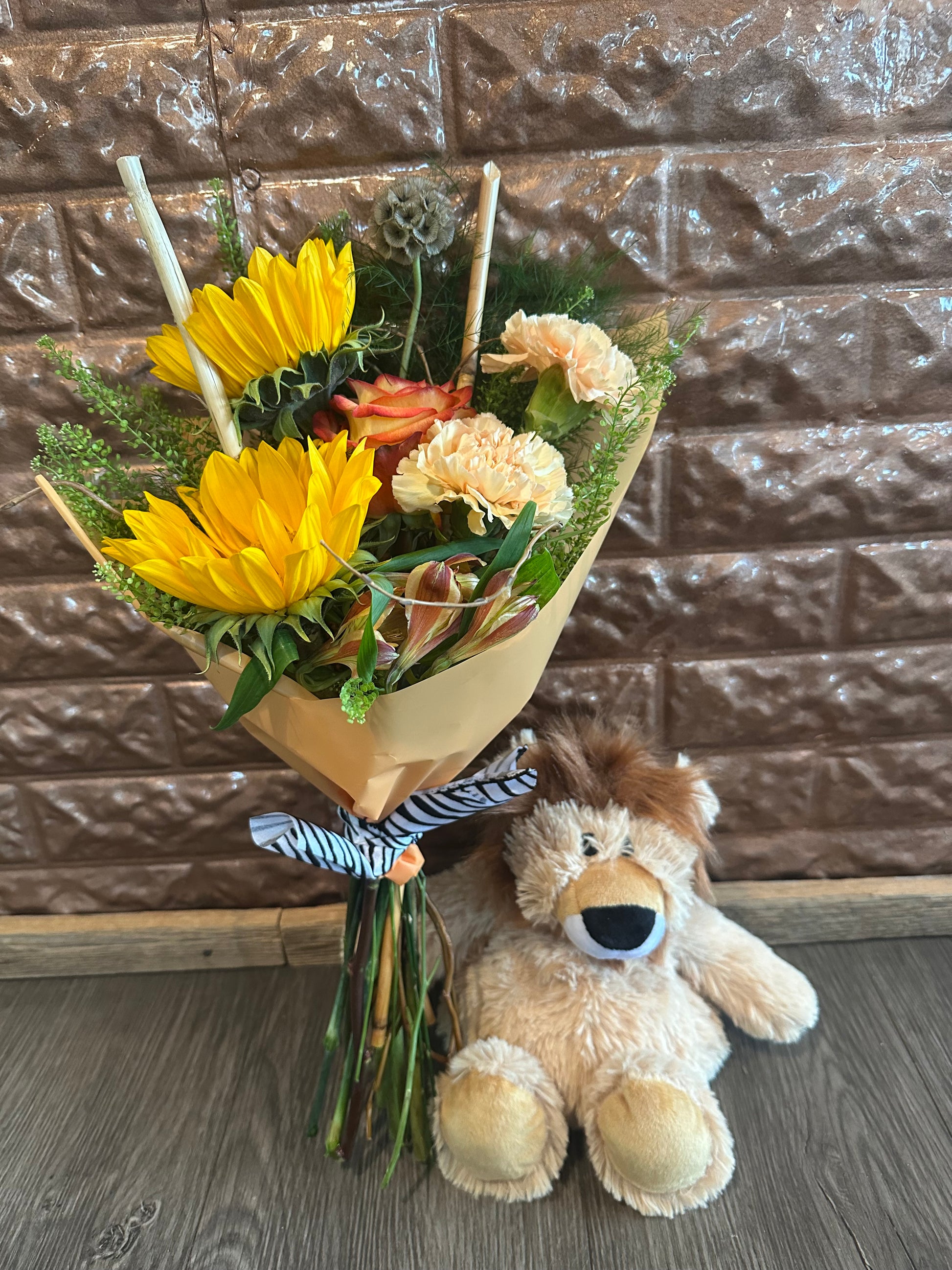 Two Lion King inspired bouquets to choose from. Upgrades are also available to add a warmie with your fresh flowers! Bouquets can be picked up at World Compass Academy before and after the performance. Additional bouquets and Warmies will be available for sale both days of the show.
